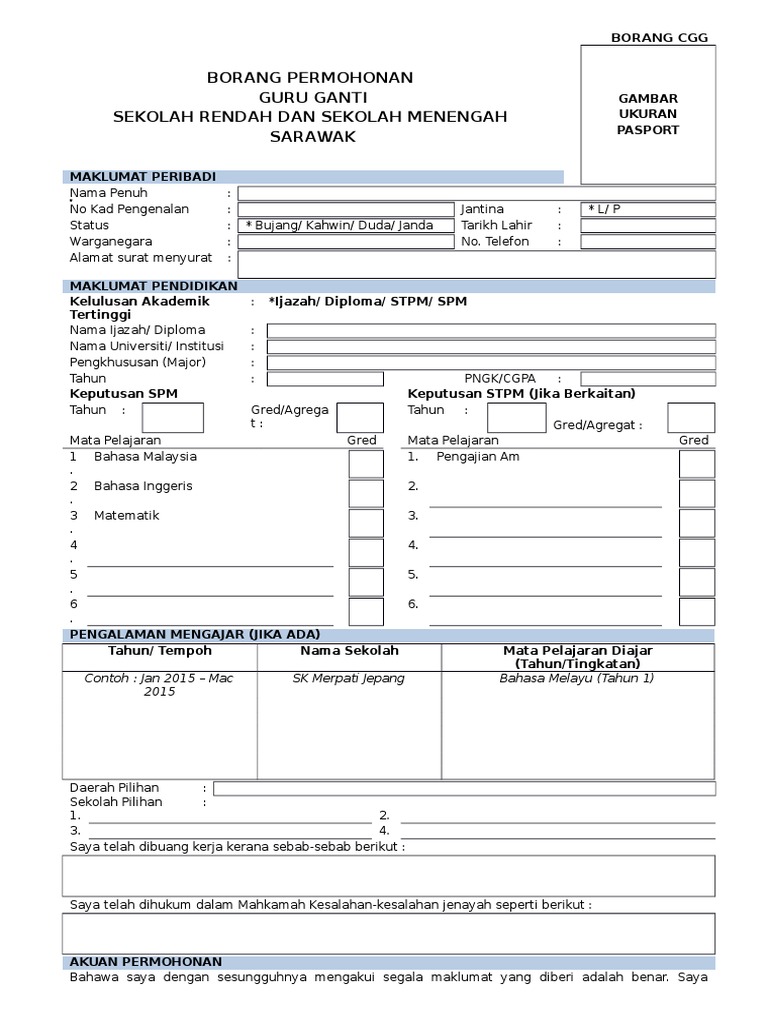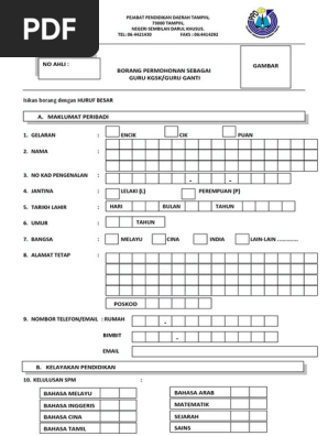 Borang Permohonan Guru Ganti Kgsk - Sila terima semua guru ganti kgsk yang telah dilantik pada hari pertama ia melapor diri.. Jika anda merupakan guru, maka bisa meminta rekomendasi pindah tugas pns dari kepala sekolah, dan dari kepala dinas untuk anda yang bekerja di dinas tertentu. Isikan borang permohonan dengan huruf besar. Use the download button below or simple online reader. Sila pastikan bilangan guru yang sedia ada tidak melebihi guru hak. Sila hubungi & hantar permohonan anda ke alamat email yang dinyatakan di.