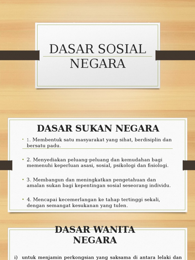 Dasar Sosial from image.slidesharecdn.com Masalah sosial merupakan sebuah perbedaan terhadap harapan dan kenyataan atau juga sebagai suatu kesenjangan diantara situasi yang ada dengan situasi yang seharusnya. Dasar sosial dan budaya dasar sosial negara dasar ini dirangka secara bersepadu, rasional, profesional, strategik, dan menyeluruh bagi menangani gejala sosial yang objektif 1. Objektif memaksimumkan pendapatan pengusaha/pekebun kecil melalui peningkatan daya pengeluaran kadar kemiskinan kualiti hidup keluarga maju dan tingkatkan hasil & mutu komoditi berpotensi. Objektif 6/4/2018 dasar pertanian negara: Mewujudkan pelbagai peluang dan kemudahan agar setiap individu, keluarga. Dasar sains dan teknologi negara. (ii) dasar kebajikan masyarakat negara, 1990; Objektif deb ialah membasmi kemiskinan dan penyusunan semula masyarakat.